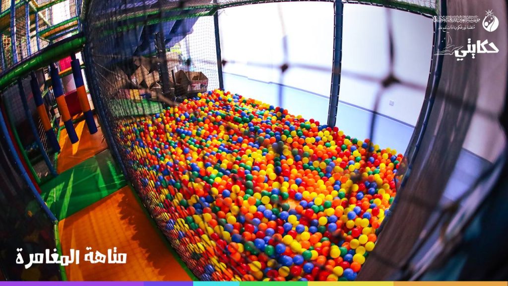 صُممت صالة الالعاب الداخلية ضمن مركز حكايتي بشكلٍ مُبتكر على يد شركات عالمية رائدة في مجال الألعاب والترفيه وجُهزّت بأحدث الألعاب والتقنيات الترفيهية لتلبية احتياجات ورغبات اليتامى الصغار في اللعب وقضائهم وقت ممتع ومفيد ضمن المركز بمساعدة فريق استشاري متخصص من الخبراء النفسيين والتربويين يسعونَ لتنمية قدرات الأطفال وتعزيز ثقتهم بأنفسهم