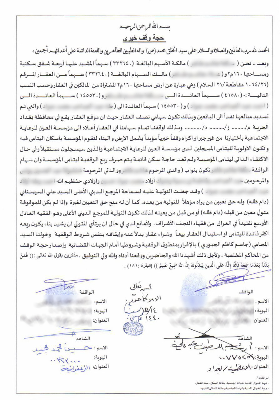 آخر لتحقق الثواب للمتبرع ووالديه. لذلك فإن المؤسسة تتبع الإجراءات القانونية على النحو الآتي: