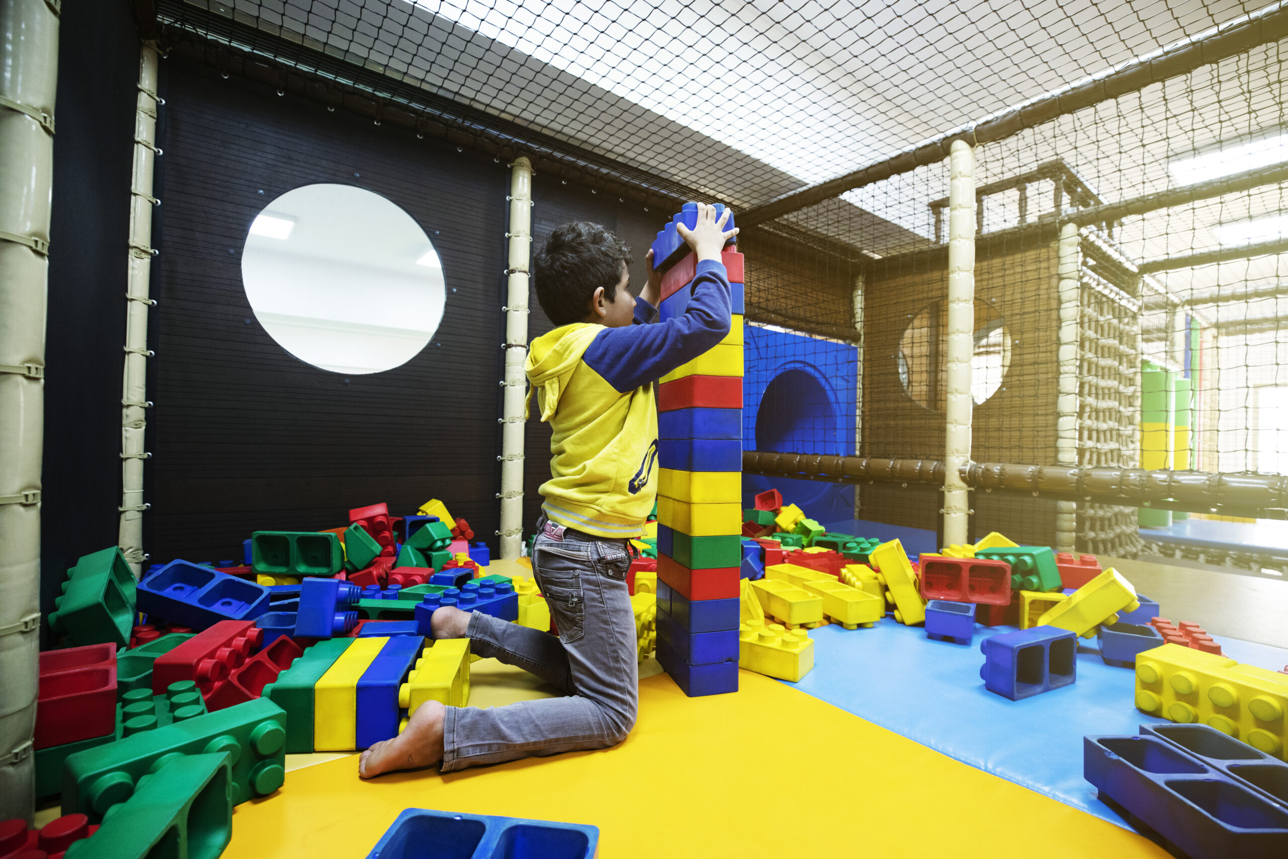 لقد جرى إنشاء قاعتين كبيرتين في مشروع الأنجم الزاهرة واحدة للذكور وأخرى للإناث، تحتويان ألعاباً مستوردةً من هولندا، نصبها فريق هندسي متخصص من بولندا. ويطلب المتخصصون النفسيون من الأوصياء اصطحاب اليتامى معهم عند تسلم المساعدات الشهرية، ويُترَك اليتامى في هاتين القاعتين لمراقبة تفاعلهم مع هذه الألعاب، وهنا يبدأ عمل المركز بالبحث عن الحالات وتشخيصها. إذ يشخص باحثون نفسيون متخصصون الحالات عند لعب الأطفال في قاعة الألعاب وذلك من خلال ملاحظة تصرفاتهم الغريبة من قبيل العدوانية أو الانطوائية أو الخوف من المرتفعات أو الأماكن المغلقة. وقد تحال بعض الحالات من قسم الرعاية الصحية أو الباحث النفسي في قاعة توزيع المعونات المالية، أو تحال بناءً على ملاحظات المتابعة الميدانية عند زيارتها العوائل.